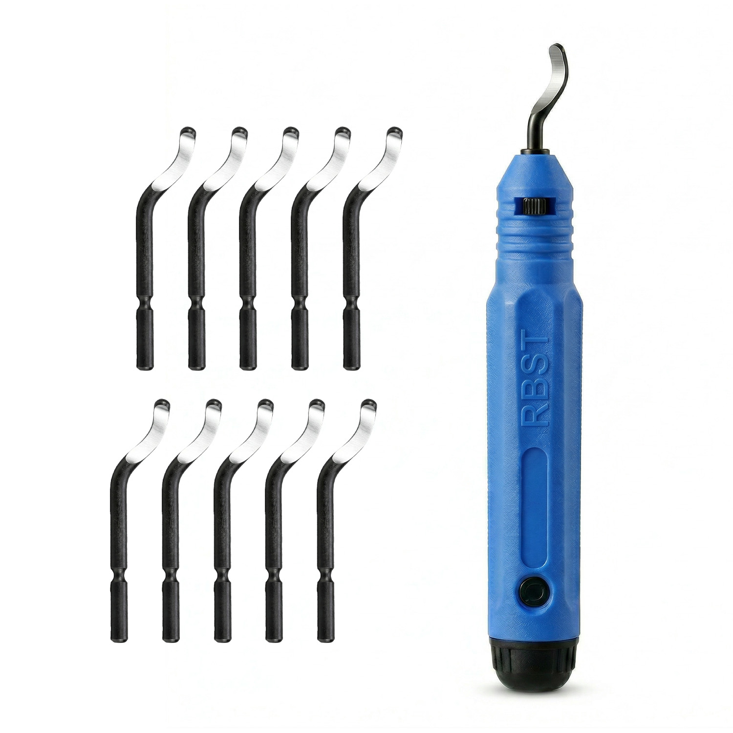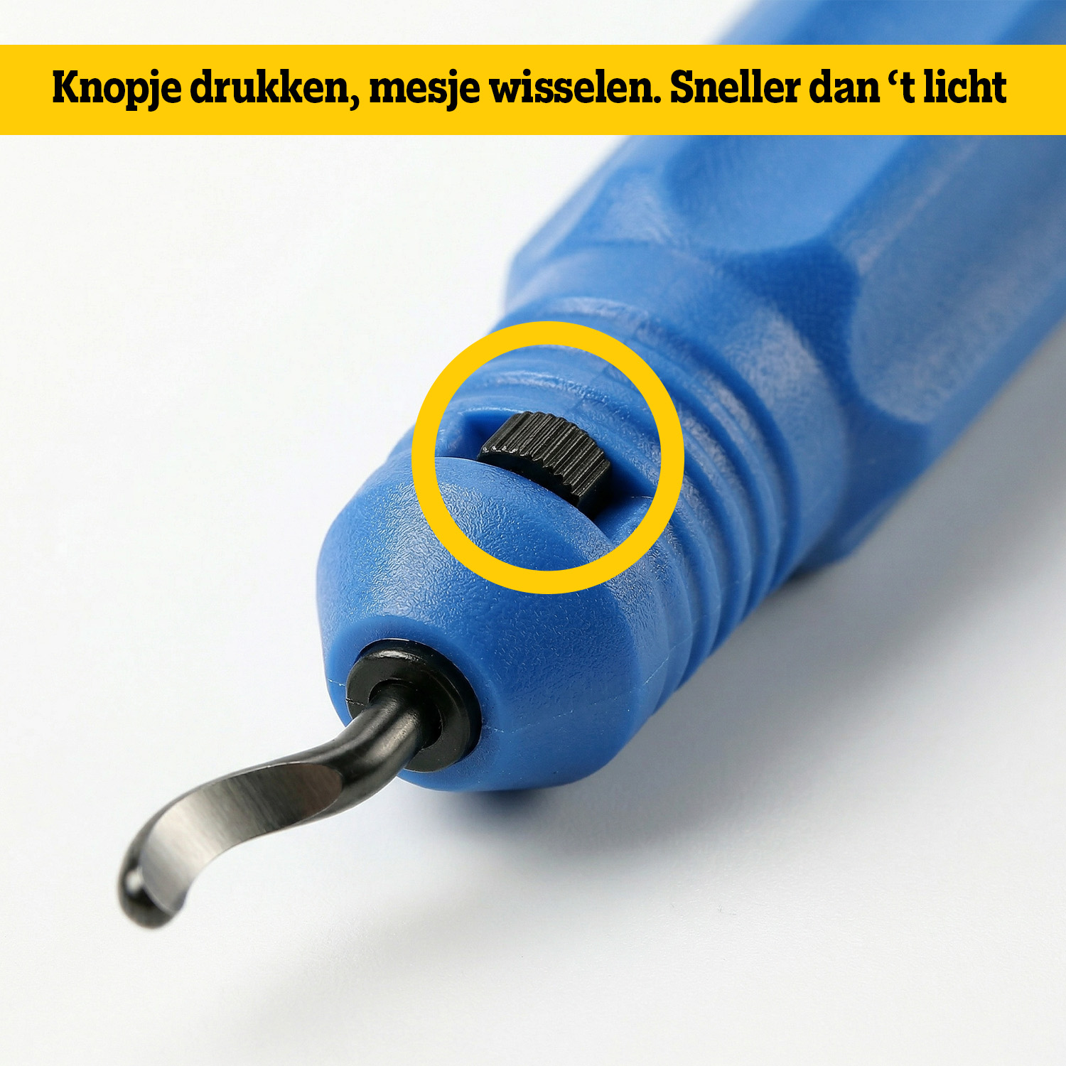 Het afbraammes met 10 reserve mesjes is een essentieel gereedschap dat je helpt om een perfect afgewerkte klus te realiseren. Dit veelzijdige mes is ontworpen om bramen, scherpe randen en ruwe oppervlakken te verwijderen van materialen zoals metaal, hout, kunststof en meer. Of je nu metaal bewerkt, hout afwerkt of kunststof snijdt, dit afbraammes zorgt ervoor dat je werkstukken glad en veilig worden.