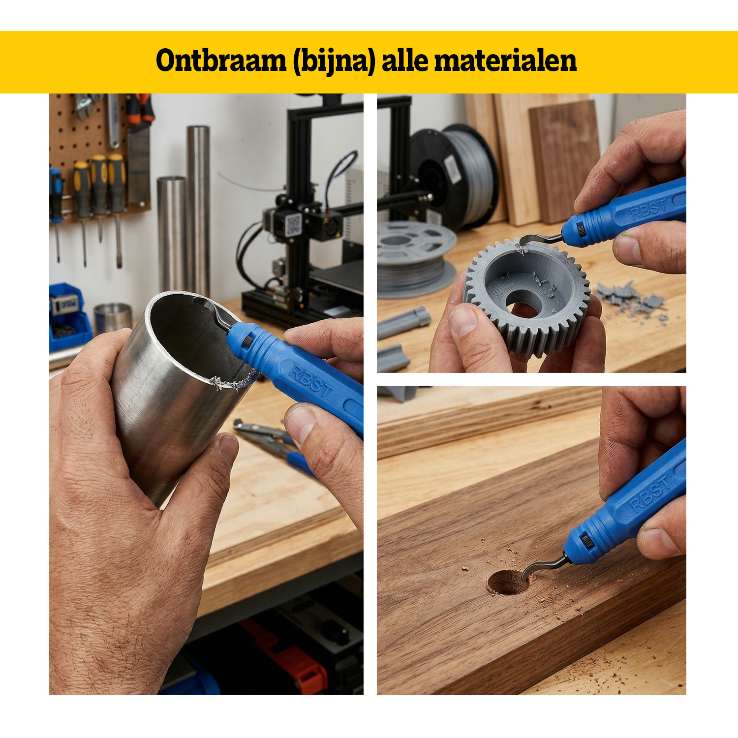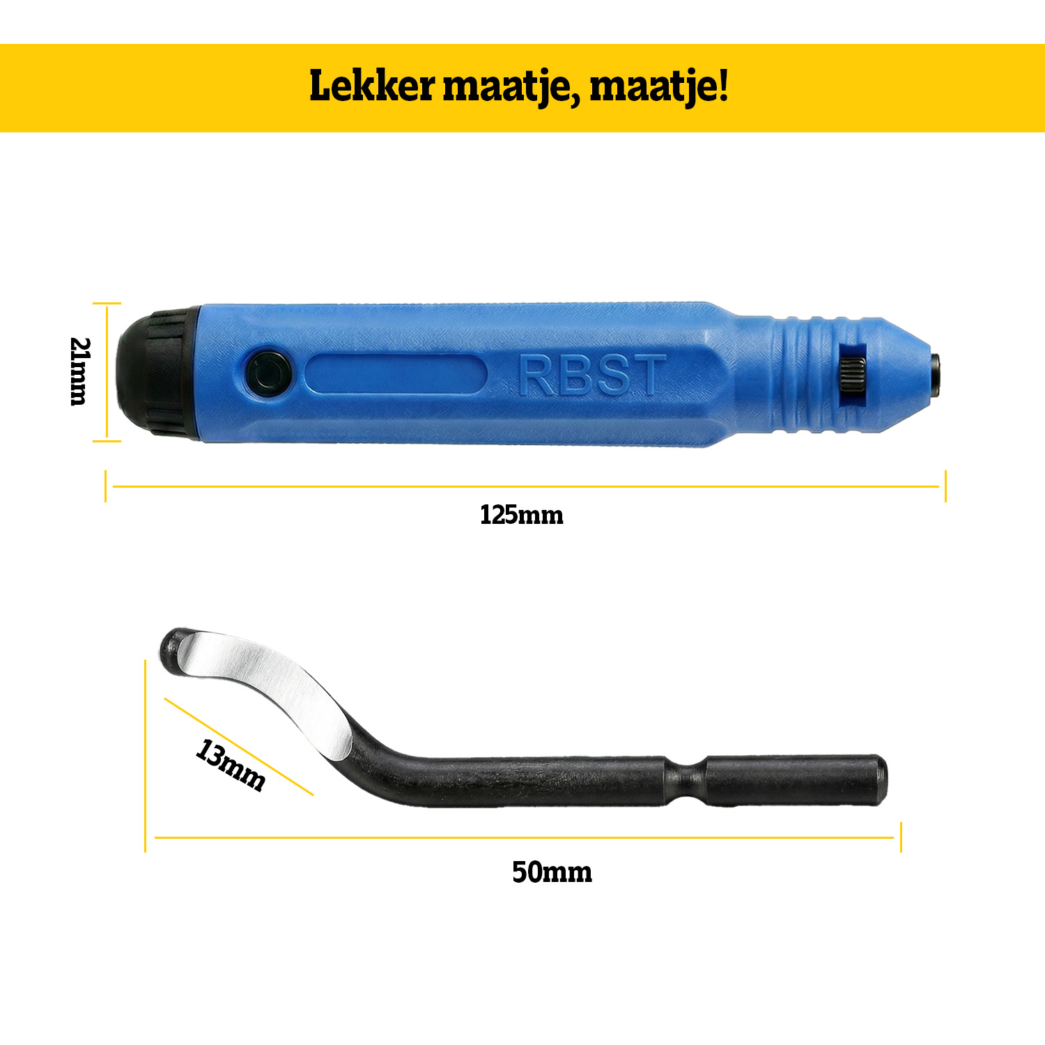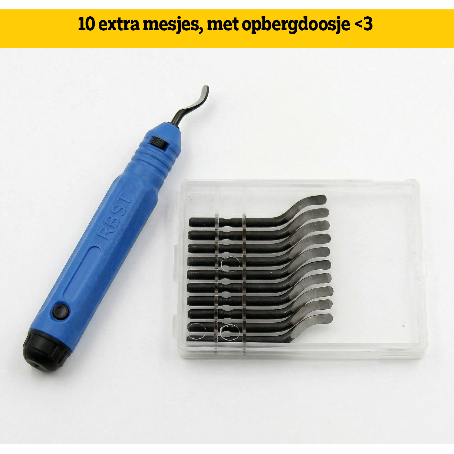 Ik kende het merk RBST niet, maar ik moet zeggen: Prijs/kwaliteit verhouding is uitmuntend. De hoeveelheid mesjes die je erbij krijgt is misschien een beetje veel omdat de messen van goede kwaliteit zijn. Ik heb dit afbraammes gebruikt voor een CV installatie, dus gelijk kunnen testen op koper, staal en PVC. Na een flink aantal ontbraam-acties nog amper last gehad van slijtage op het mes. Wat ook super handig is, is dat je de extra afbraammessen achter in het mes kunt bewaren. Niet vergeten anders zoek je je rot ;).