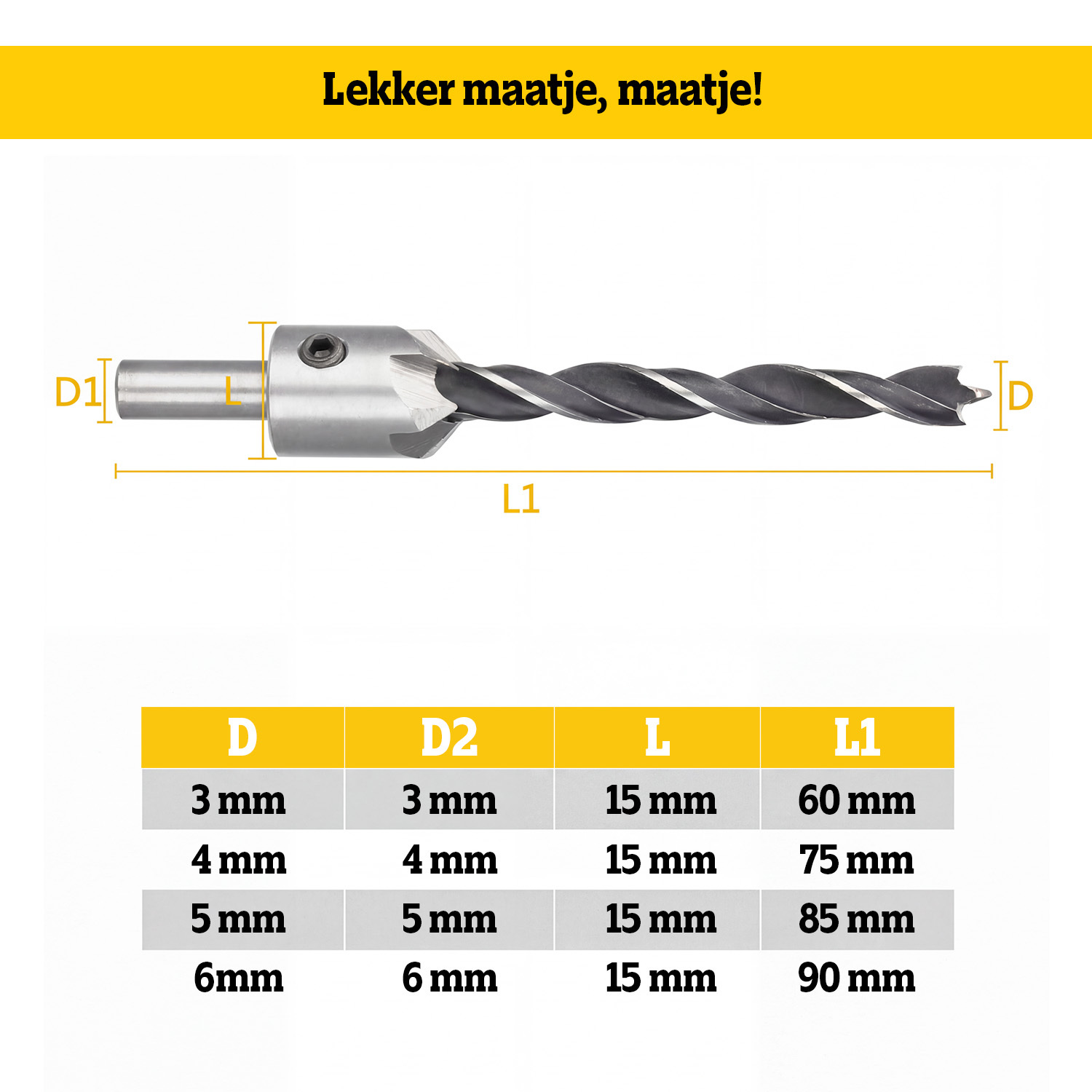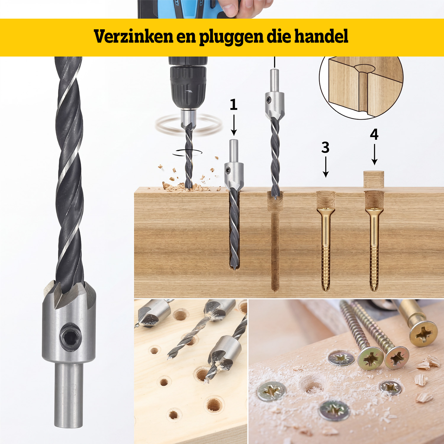 - Scherpe en duurzame boren voor een precieze verzinking